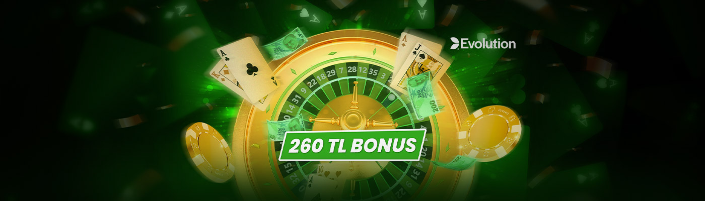 • Evolution canlı oyunlarında geçerli ve sadece bir kat çevrimli 260 TL Bonus hesabına gelsin!