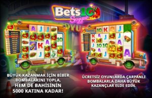 - Bahisinin 5.000 katına kadar kazanmak için Biber Bombalarını topla.